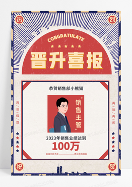 复古国潮风晋升喜报销售冠军庆贺海报