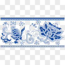 中国风红色花纹手绘青花瓷中式花纹免抠元素