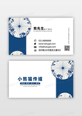 古典精致油纸伞青花瓷图案名片
