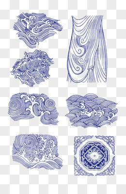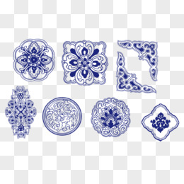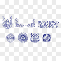 手绘青花瓷中式花纹免抠元素