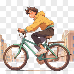 卡通风环保低碳出行方式年轻男子骑自行车穿过城市免抠元素