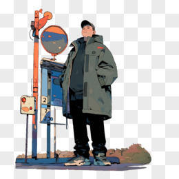 卡通风环保低碳出行方式男人等公交车免抠元素