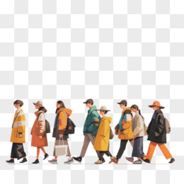 卡通风环保低碳出行方式一群人在公交站等公交车免抠元素