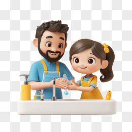 卡通风环保创意标志环卫工人垃圾箱免抠元素