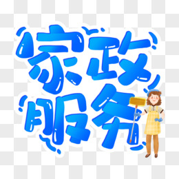蓝色卡通家政服务标题艺术字