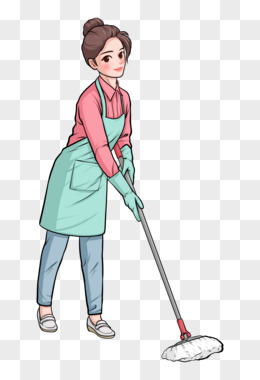 卡通手绘做家务的女人免抠元素