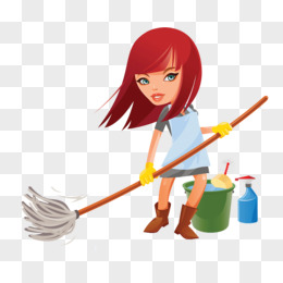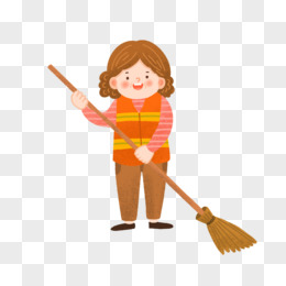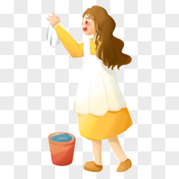 手绘卡通女生做家务打扫免抠元素