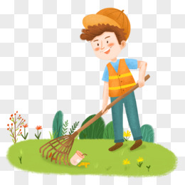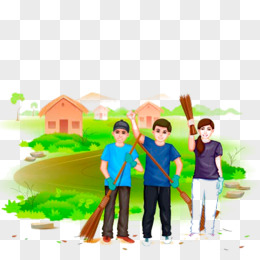 卡通手绘学生勤劳打扫教室卫生免抠元素