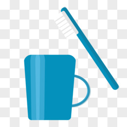卡通手绘蓝色牙杯牙刷素材