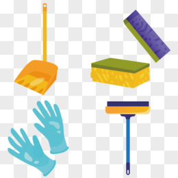 一组卡通手绘清洁工具免抠元素