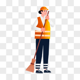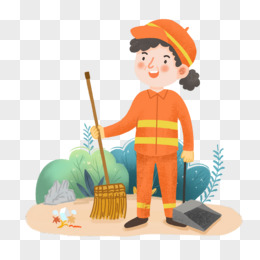 卡通手绘免抠环卫工人素材