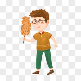 卡通手绘大扫除鸡毛掸子扫灰免抠元素