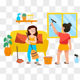 手绘卡通小伙伴在家一起擦玻璃免抠素材