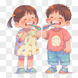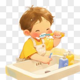 卡通手绘小朋友拿着牙刷刷牙免抠元素