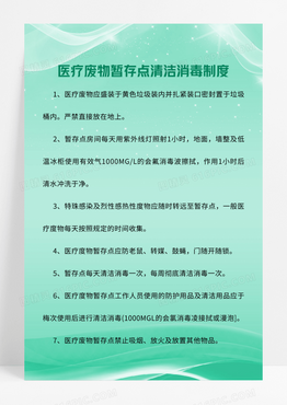 绿色小清新医院诊所医疗废物暂存点清洁消毒制度宣传海报