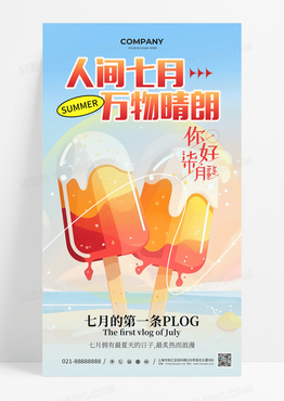 浅蓝色7月你好人间七月万物晴朗雪糕海报