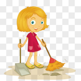 手绘卡通爸爸和女孩一起打扫卫生插画免抠元素