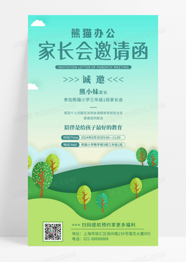 青绿简约家长会邀请函手机文案海报