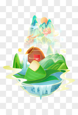 青绿山水粽子国潮插画元素