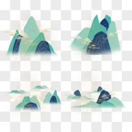 古风青山祥云青绿山水免抠元素