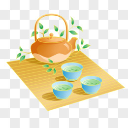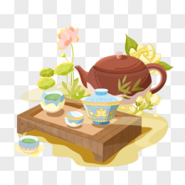 手绘茶具茶碗组合插画元素