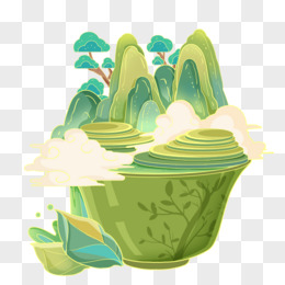 手绘青绿山水剪纸风格元素