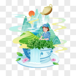 创意插画微景观茶杯茶叶元素