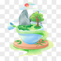 手绘茶杯微景观创意场景插画元素