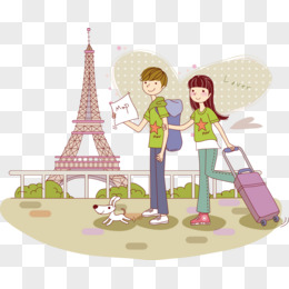 手绘卡通穿冬装拥抱的情侣插画免抠元素