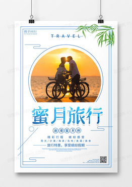 白色情侣骑单车夕阳下亲吻简约风旅行蜜月游海报