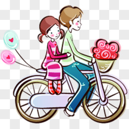 手绘情侣骑自行车免抠元素