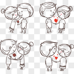 卡通手绘恋人情侣约会甜蜜亲吻素材