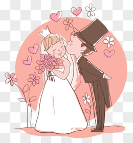 卡通手绘新人情侣插画矢量素材