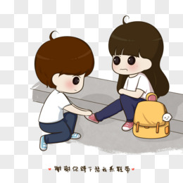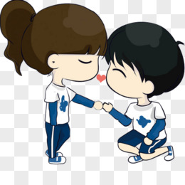 手绘卡通情侣拉钩素材