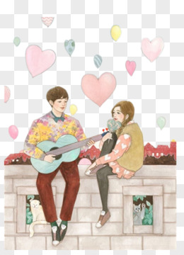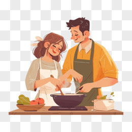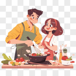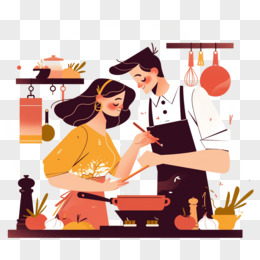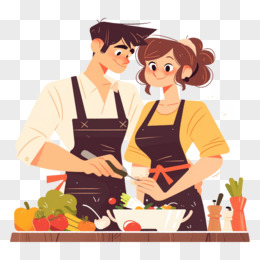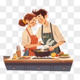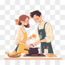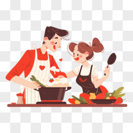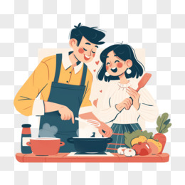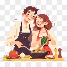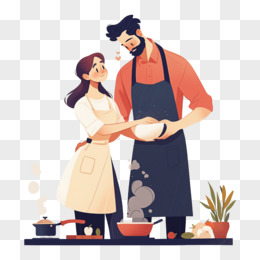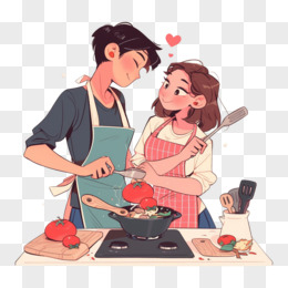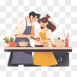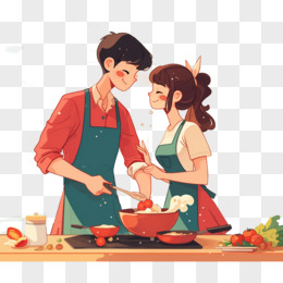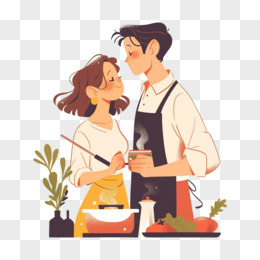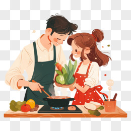 卡通手绘恋爱中的情侣一起做饭元素