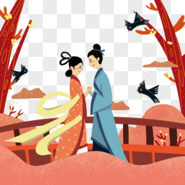 牛郎织女七夕节情人节插画素材