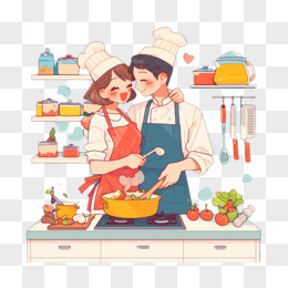 卡通手绘情侣下厨做饭元素