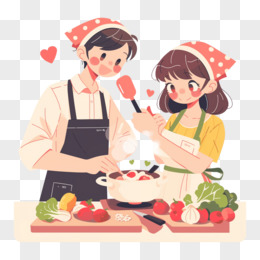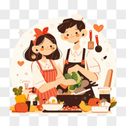卡通手绘情侣做饭元素