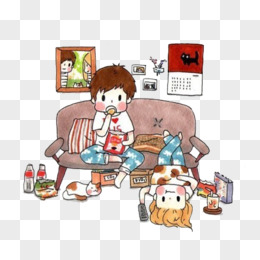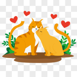手绘卡通动物情侣猫猫贴贴爱情元素