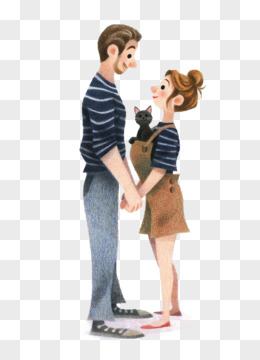 手绘卡通男生送女生花和猫咪插画免抠元素
