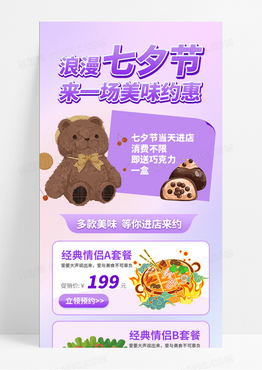 简约清新紫色情人节七夕节美食活动手机海报H5