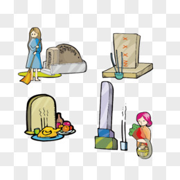 一组卡通清明祭祀祭奠祭拜扫墓套图合集系列六元素