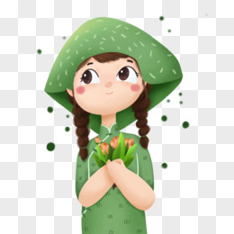 原创卡通春天采茶女孩元素