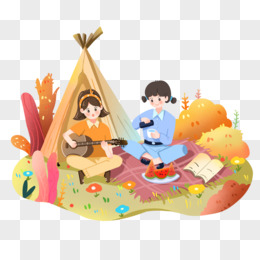 手绘插画风女孩儿们再户外郊游野餐插画元素