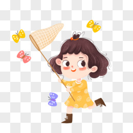 卡通手绘免抠捕蝴蝶的女孩子元素