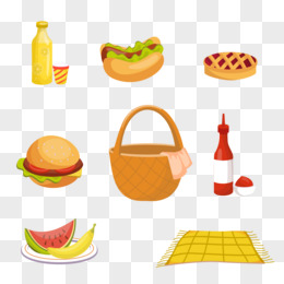 一组卡通踏青野餐物品贴纸套图装饰素材
