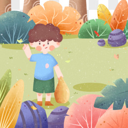 卡通手绘男孩户外捕捉蝴蝶免抠元素