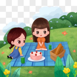 手绘卡通女孩们在郊外野餐免抠元素