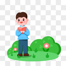 卡通手绘男孩在野外看书免抠元素