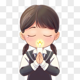 卡通女孩拿着蜡烛缅怀祷告免抠元素